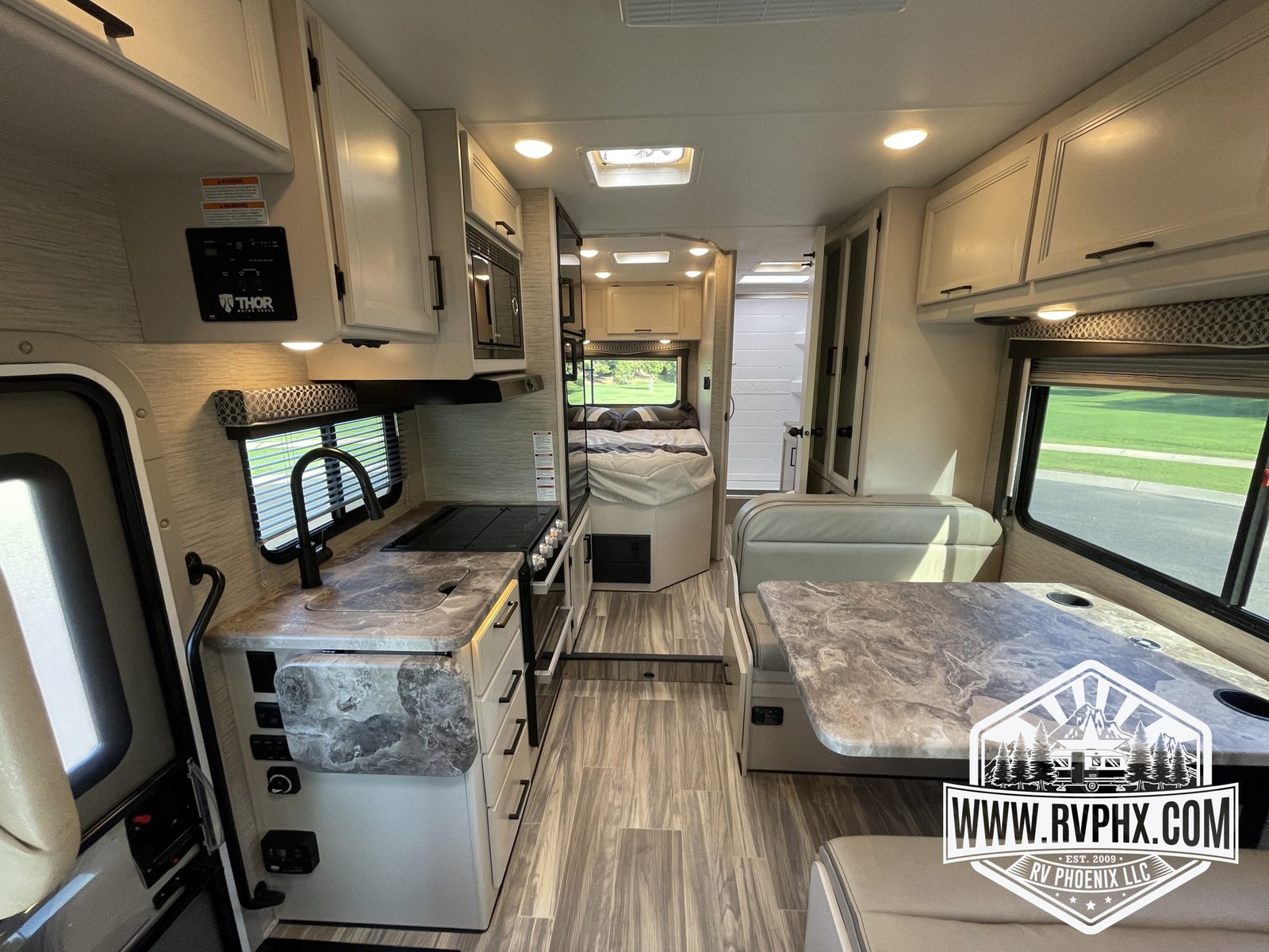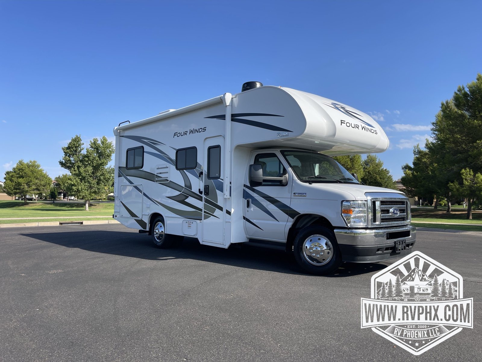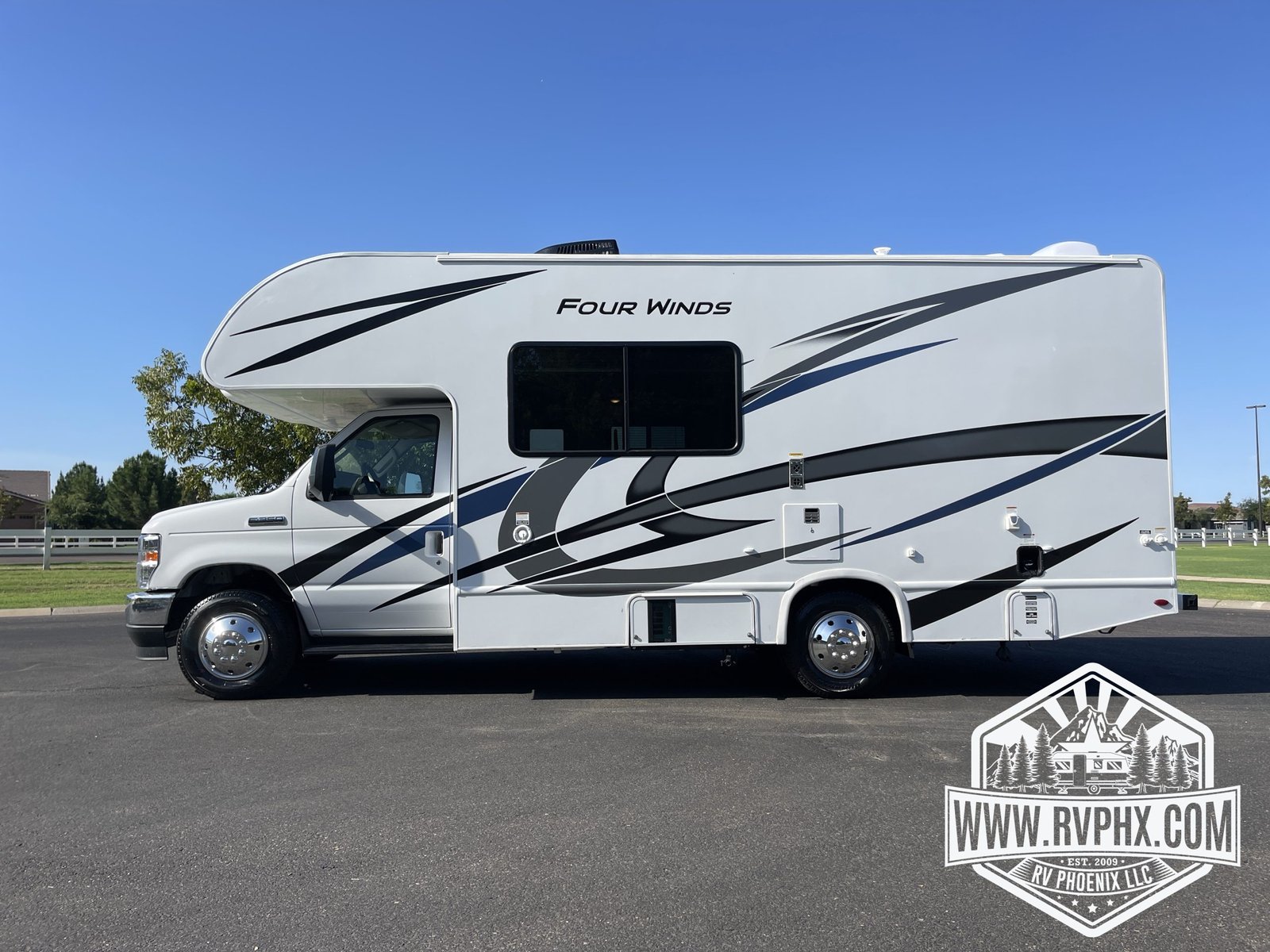 The Thor Motor Coach 22E Four Winds Class C motorhome is a compact yet spacious RV, perfect for small families or couples. It features a full kitchen, sleeping space for up to 5, and a comfortable interior. With a reliable Ford chassis and easy maneuverability, this motorhome is ideal for both short getaways and extended road trips.