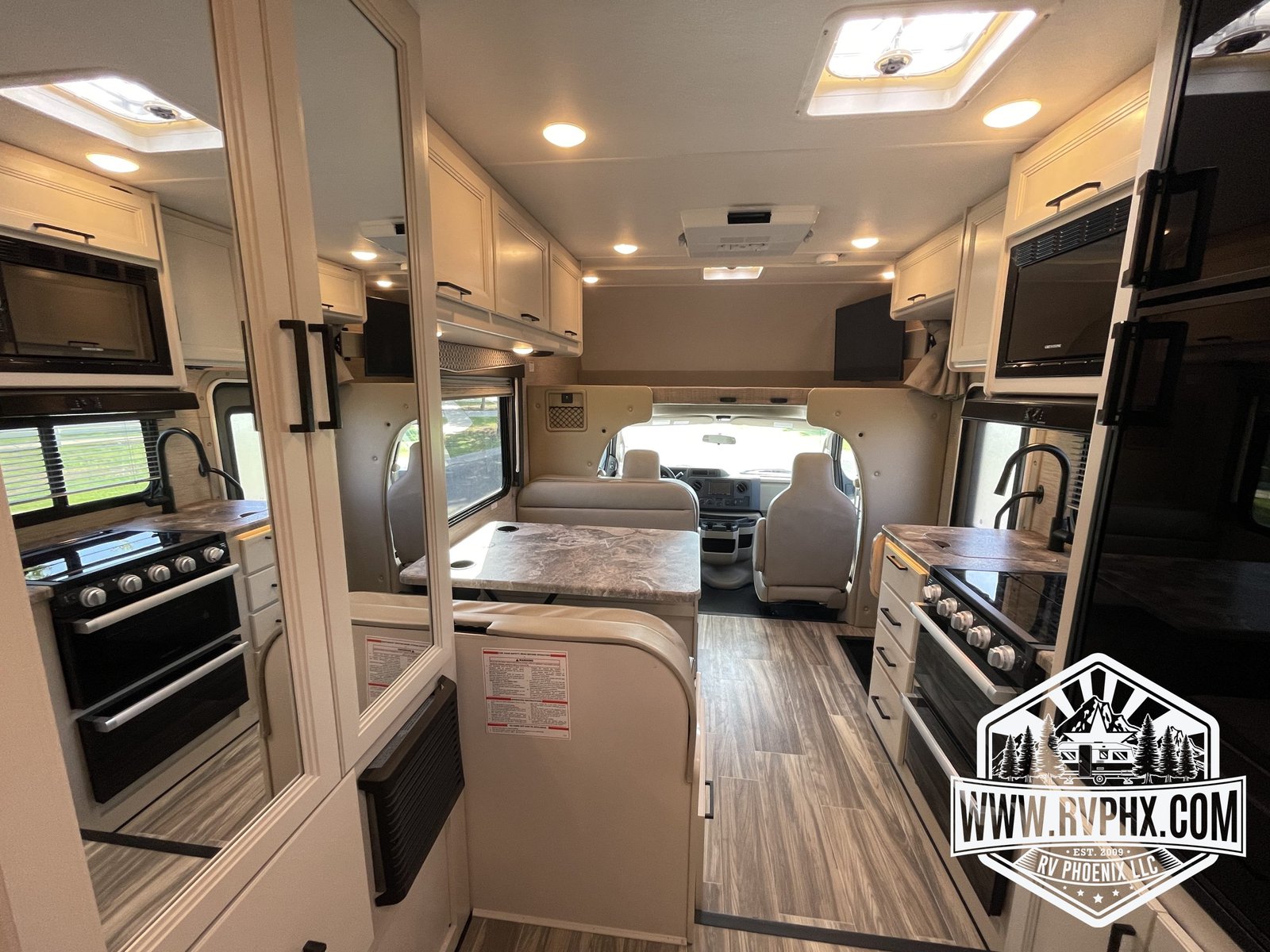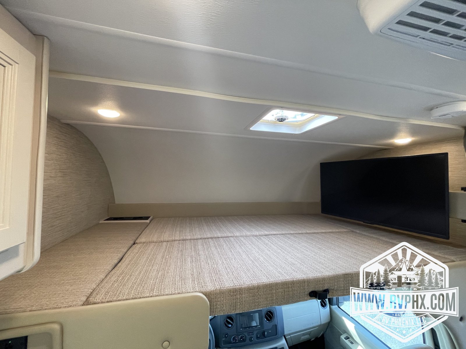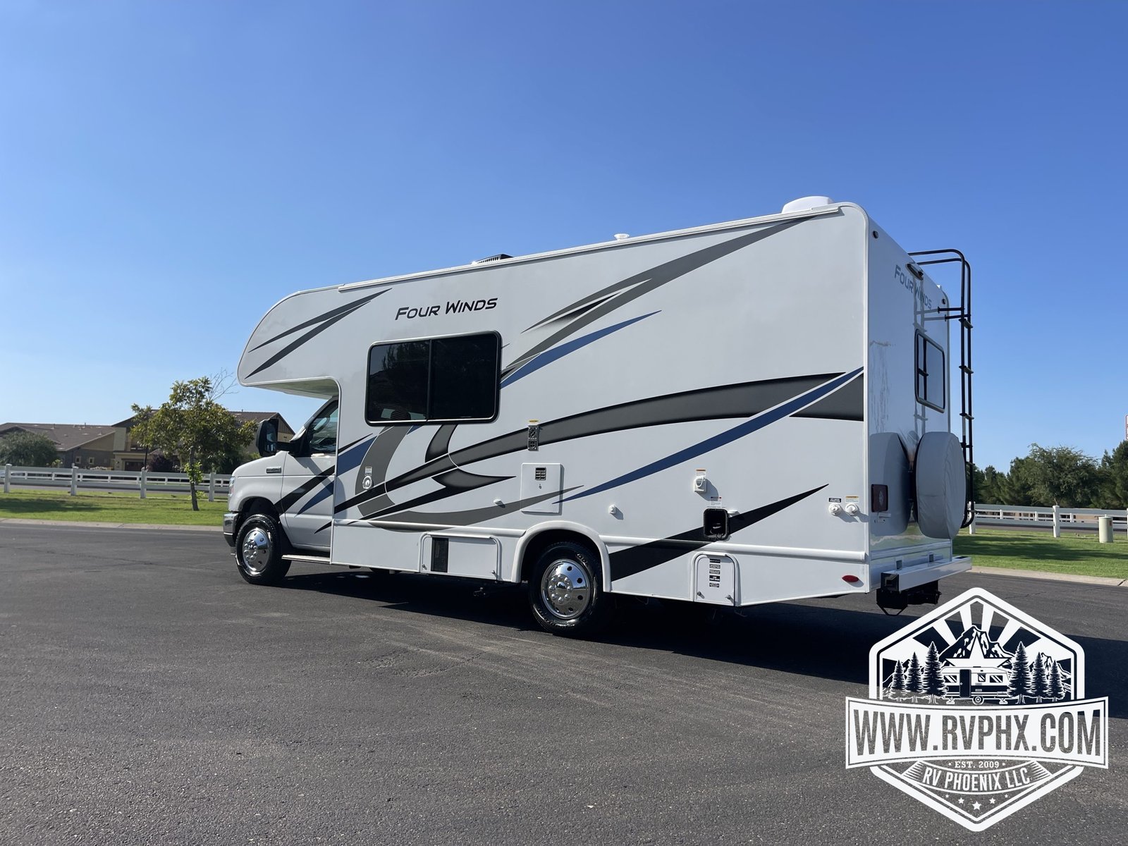 The Thor Motor Coach 22E Four Winds Class C motorhome is a compact yet spacious RV, perfect for small families or couples. It features a full kitchen, sleeping space for up to 5, and a comfortable interior. With a reliable Ford chassis and easy maneuverability, this motorhome is ideal for both short getaways and extended road trips.
