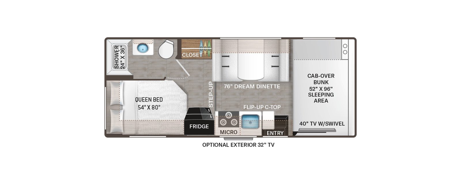 Here’s a list of specifications for the Thor Motor Coach 22E Four Winds Class C motorhome: