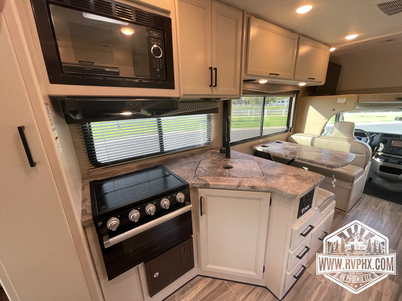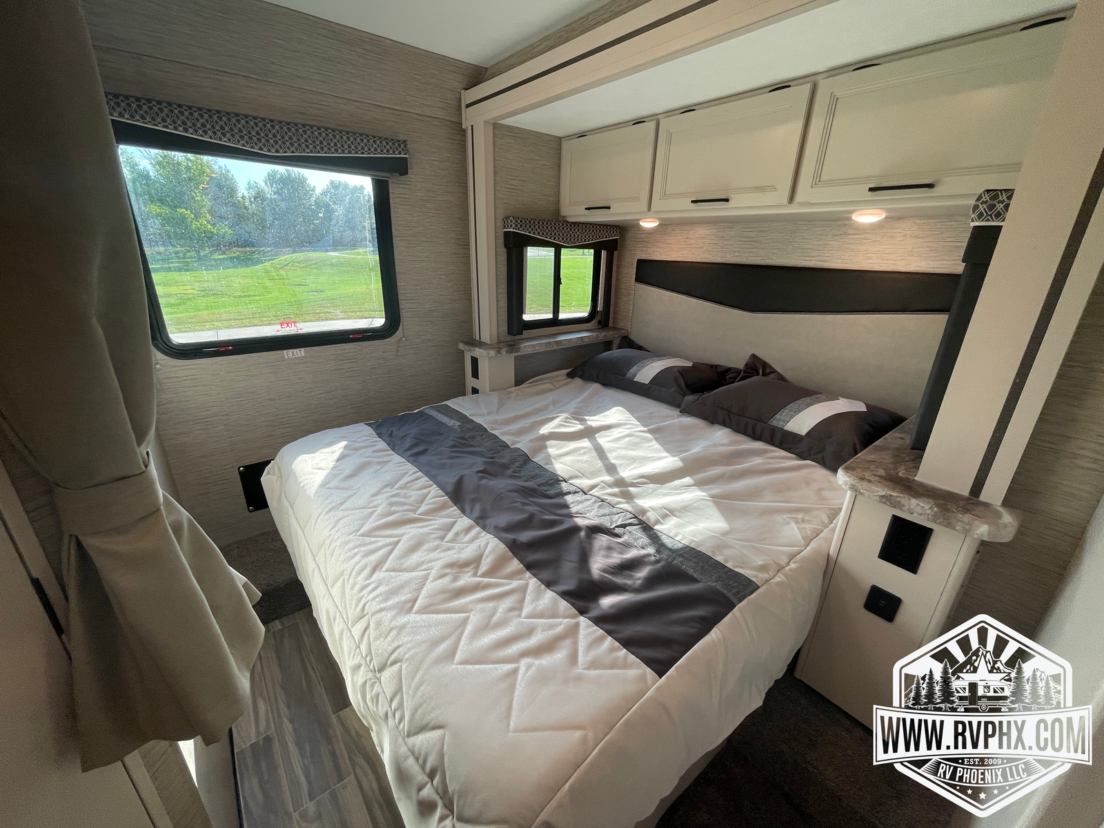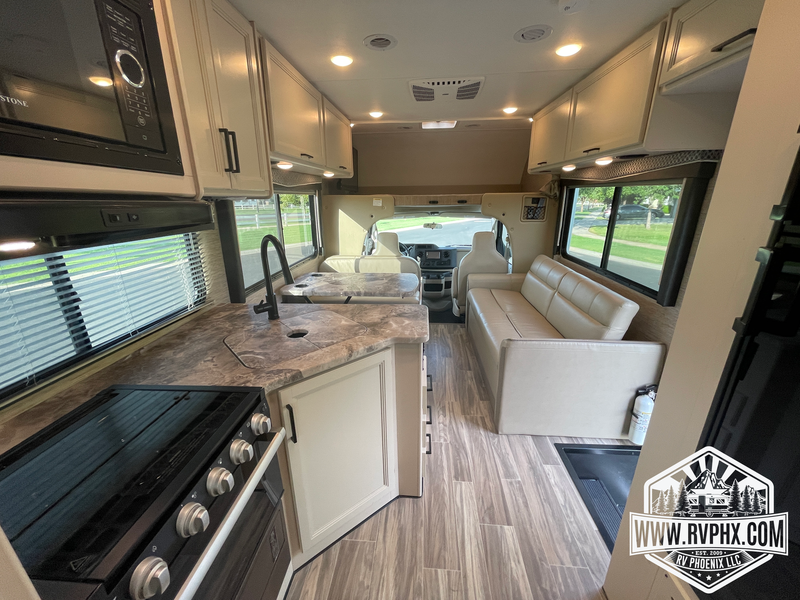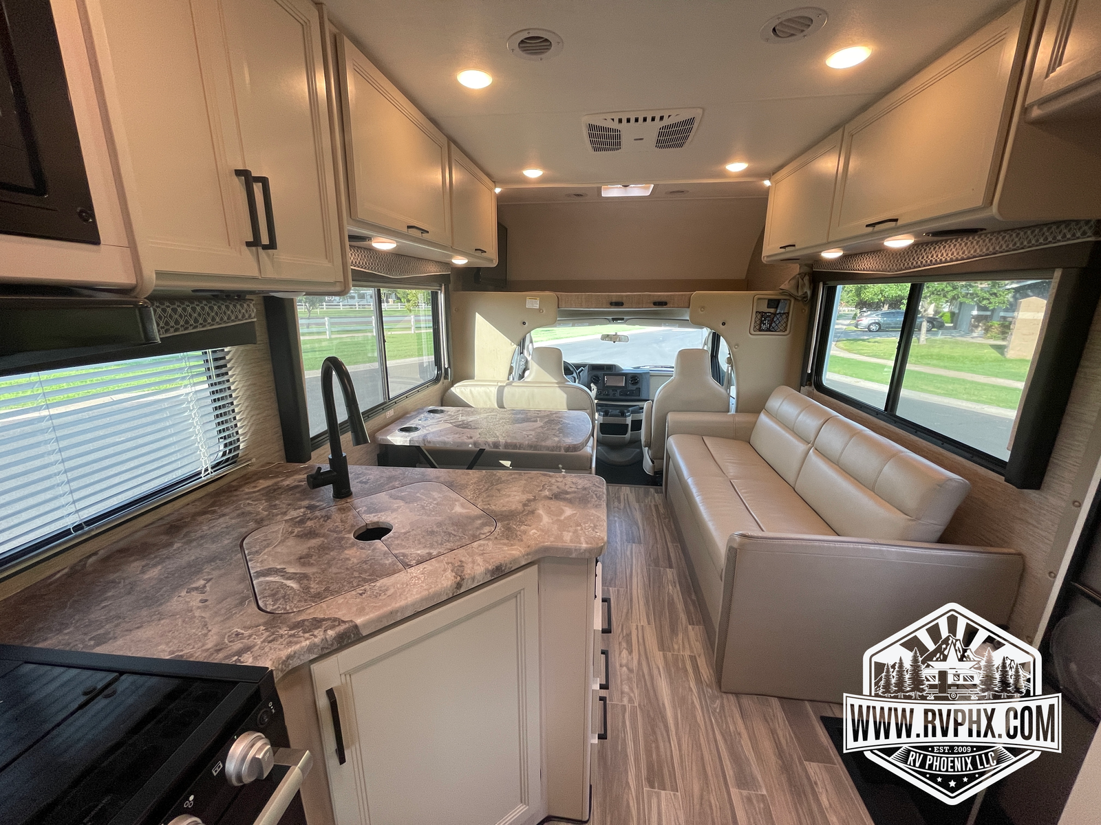 The Thor Motor Coach Four Winds 26B Class C motorhome is designed for families seeking comfort on the road. It features a spacious layout with sleeping accommodations for up to 7, including a queen bed, overhead bunk, and convertible dinette. Equipped with a full kitchen, bathroom, and ample storage, it ensures a smooth travel experience. Built on a Ford E-Series chassis, the 26B offers easy handling, making it perfect for long road trips or weekend getaways.