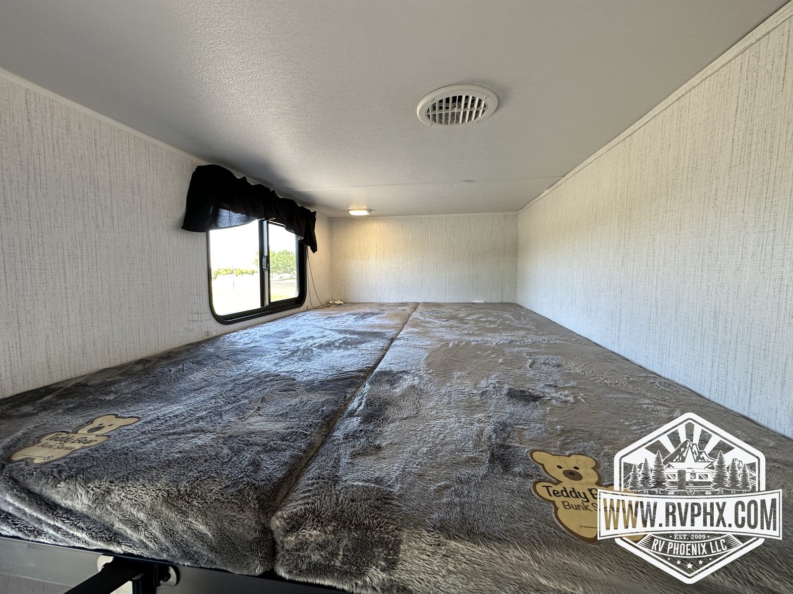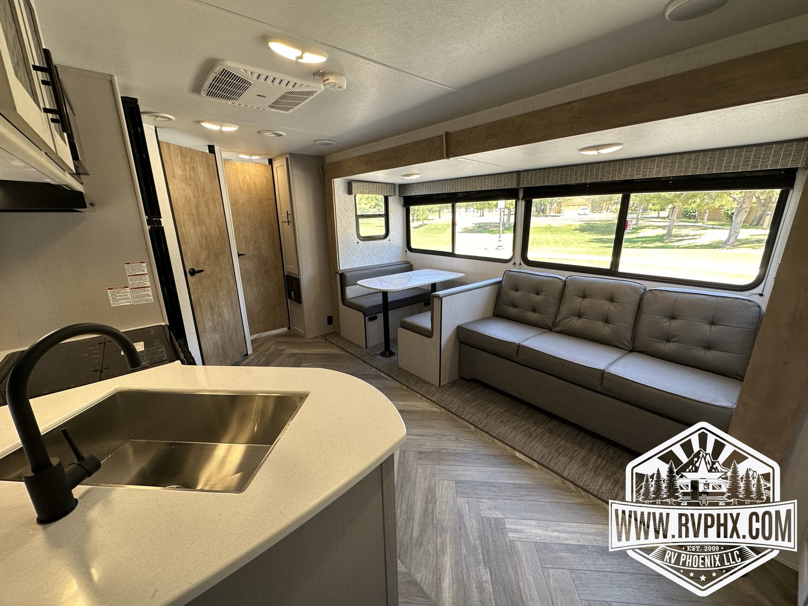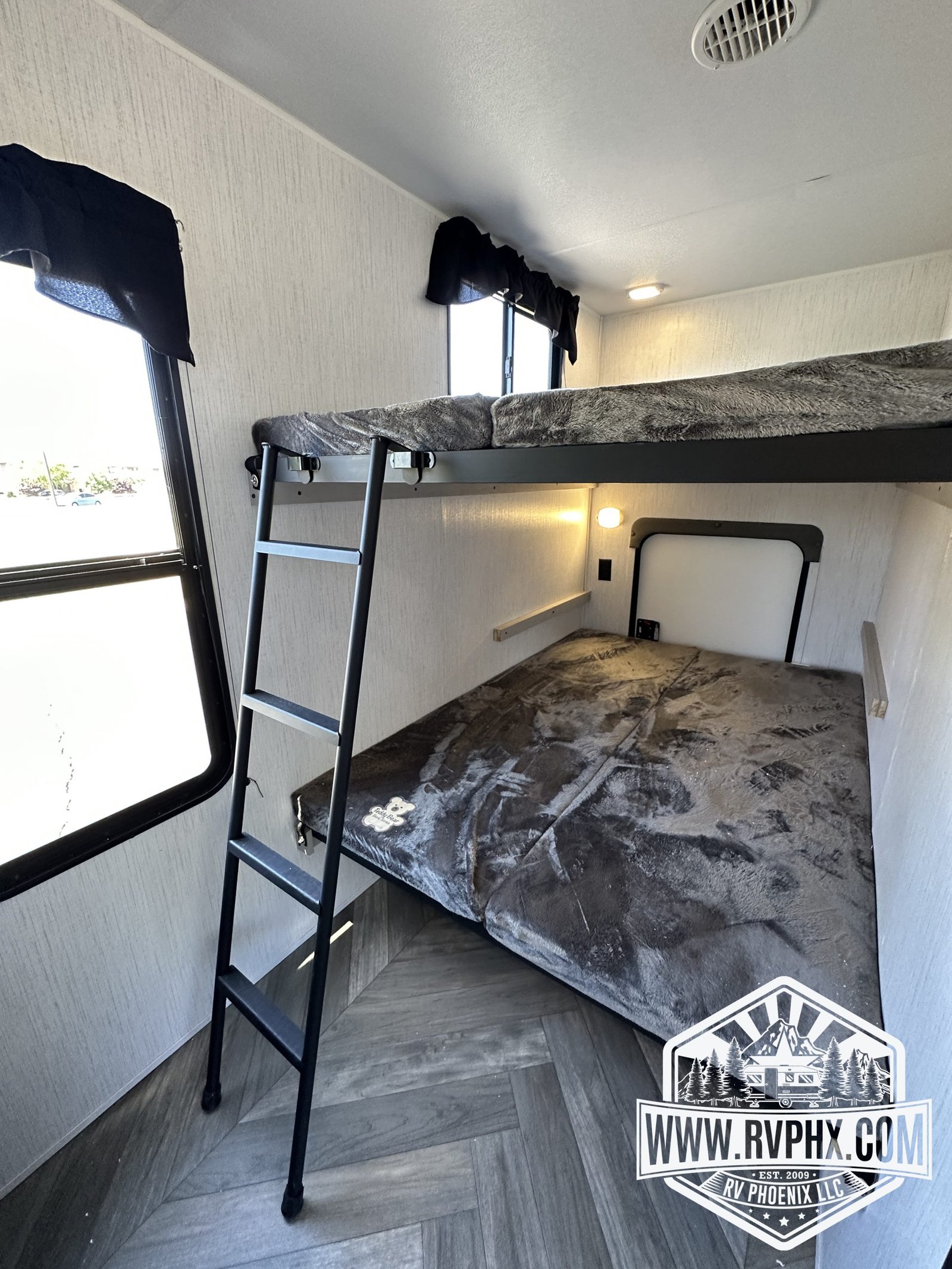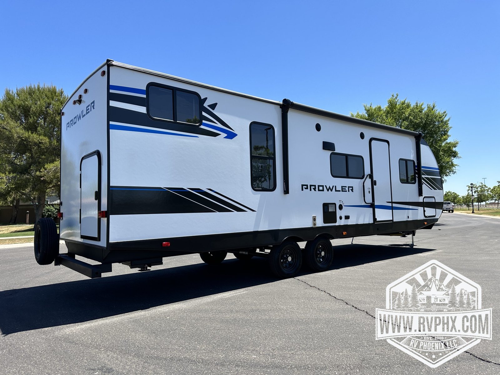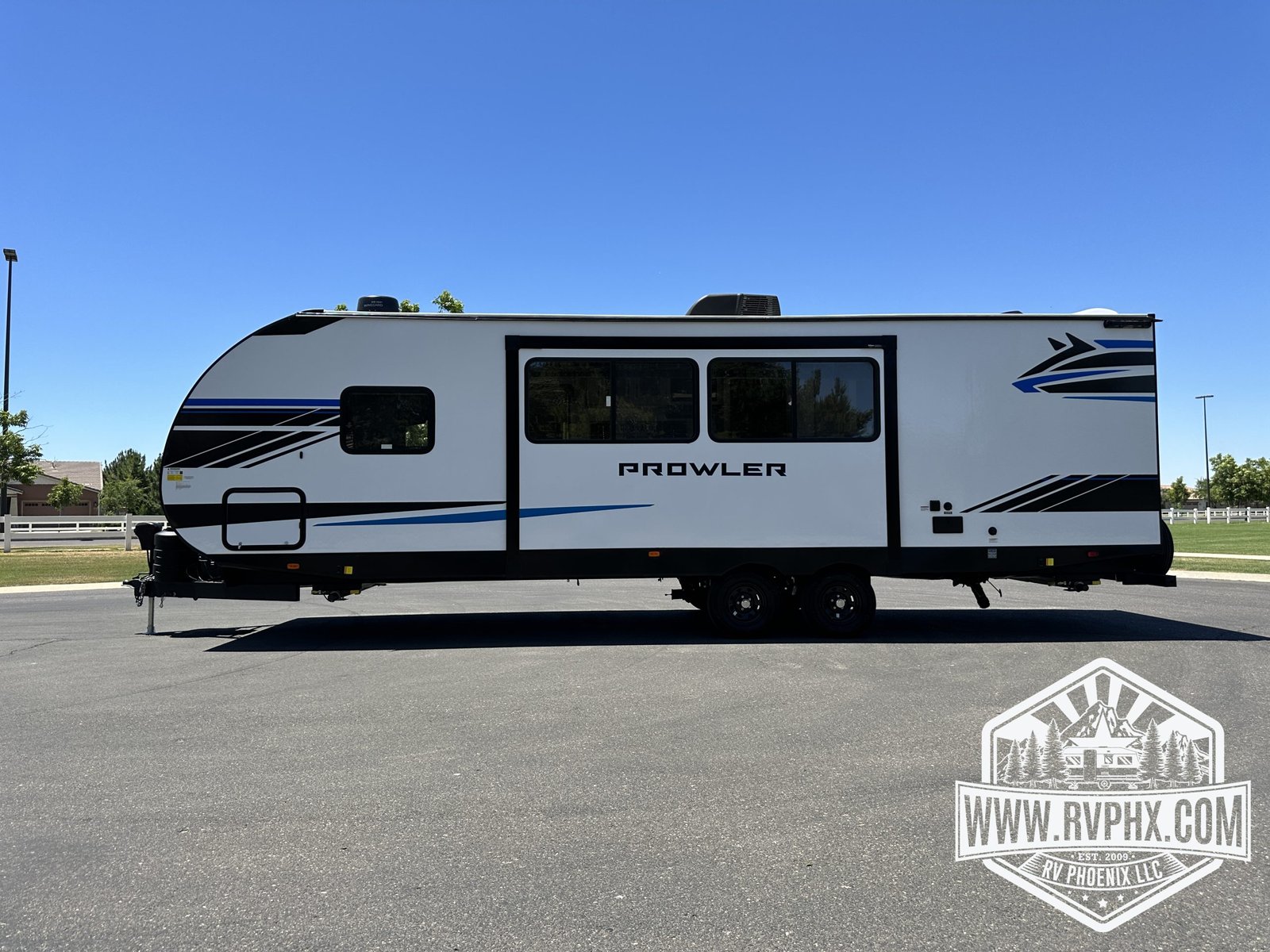 The Prowler 271SBR by Heartland is a versatile and spacious travel trailer designed for family adventures. With a length of 30 feet, it comfortably sleeps up to 8 people, featuring a private queen bedroom and double bunk beds. The open floor plan includes a fully equipped kitchen, a large dinette, and a cozy living area. Built with durable construction and ample storage, this travel trailer is perfect for extended stays or weekend getaways, offering both comfort and convenience on the road.